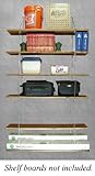 Quickly and easily create a wall mounted shelving unit in your garage, basement, shed, or wherever else desired. This kit delivers a total of four 12" tall shelves and two 16" tall shelves. Once the top shelf is hung, the remainder of shelf hangers are each hung from the one above it with the simple hook through construction. With only two wall attachment points for the entire rack of shelves, the only tools required are a drill, 3/16" drill bit, screwdriver, and 1/2" wrench. The shelf hanger kit includes eight 12" wide X 12" tall Shelf Hangers, two 12" wide X 16" tall Shelf Hangers, two 12" wide Wall Mount Shelf Hangers, two 5/16" lag screws, and 28 hanger clips w/ mounting screws. Please note that shelf boards are not included. Home center stores such as Lowes and Home Depot will rip plywood shelves at minimal or no charge. DON'T FORGET to visit our Amazon store (select "Quick-Shelf" written near top of page in blue) for other sizes and A la carte items..../ Quick - Shelf Hangers Six Shelf 12" Deep Wall Mount Shelving Unit / Wood Wall Units